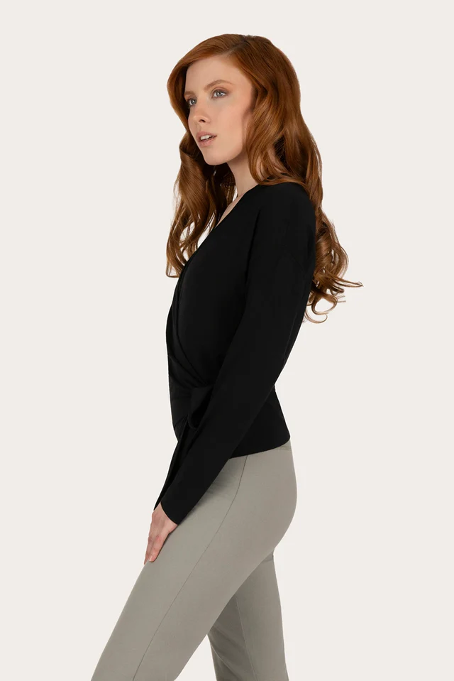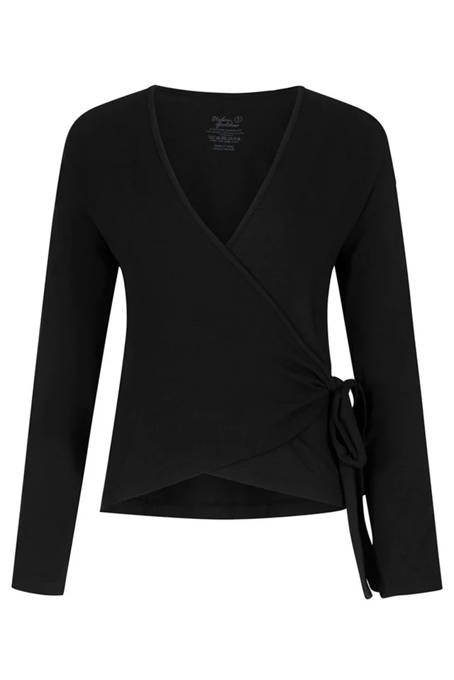 Le gilet d’enveloppement Aurora Yoga est un haut à manches longues élégant et confortable. Fabriqué à partir d’un mélange doux et respirant de bambou, coton biologique et une touche de lycra, il offre une sensation légère et fluide sur la peau. Parfait pour le yoga, le pilates, la méditation, ou comme pièce superposée décontractée en dehors du tapis.